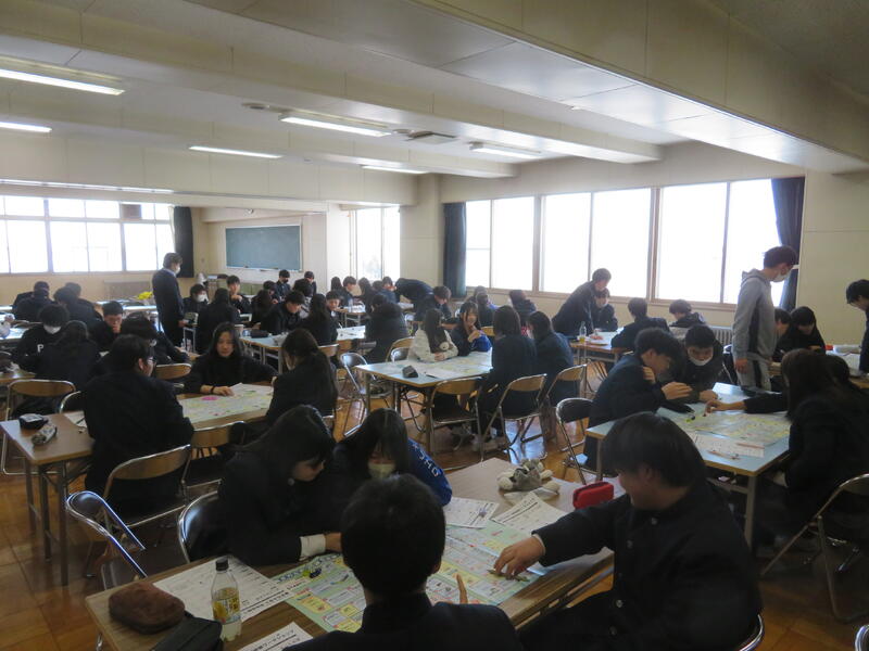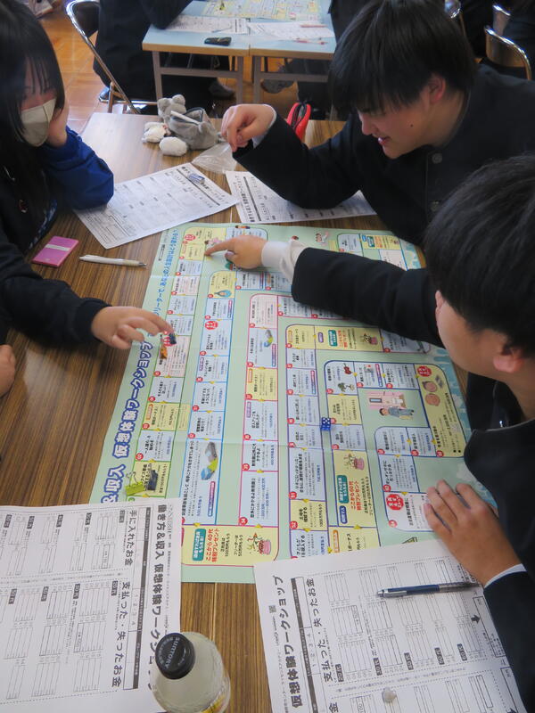 1学年の総合探究を大講義室にて行いました。働くことの意味や将来の進路、これからの生活の見通しについて人生ゲームを通してグループで考えました。生徒たちはゲームに夢中になりつつ、これからの暮らし方や働き方を振り返ることができ、大変充実した時間となりました。